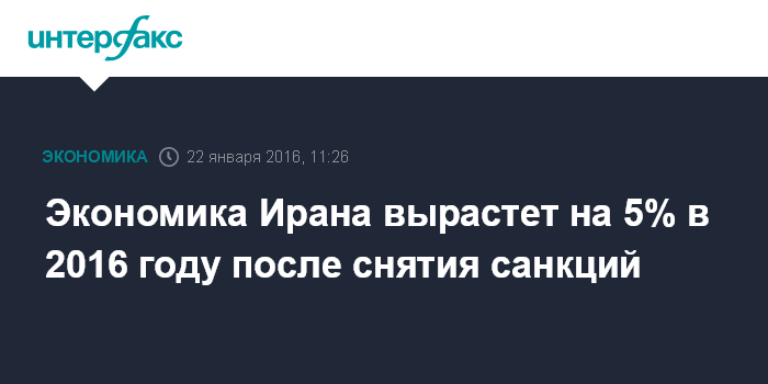 Москва. 22 января. INTERFAX.RU – Экономика Ирана вырастет на 5% в этом году по мере постепенного снятия международных санкций, заявил глава администрации президента страны Мохаммад Нахавандиан на Всемирном экономическом форуме в Давосе