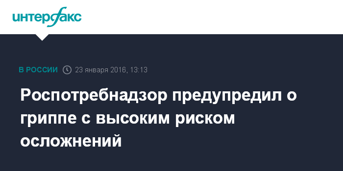 "Мы видим, что этот грипп пришел. И поэтому ровно с первой декады января мы говорим: "Дорогие россияне, граждане России, нужно поберечь себя. Потому, что грипп пришел крайне неприятный, опасный с высокой степенью риска осложнений и очень быстрого их развития", - сказала она в интервью Сергею Брилеву в программе "Вести в субботу" (ВГТРК).