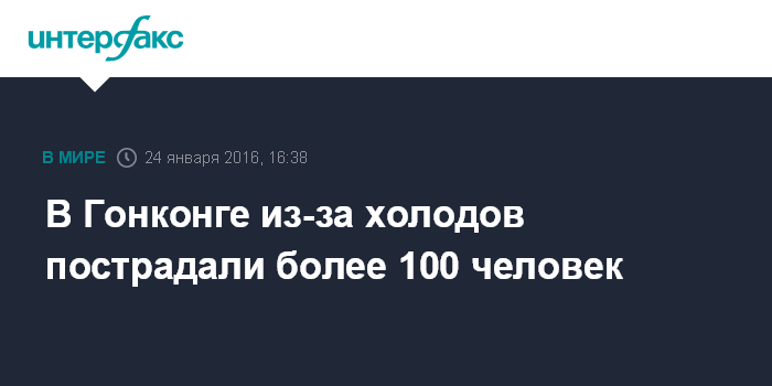 Москва. 24 января. INTERFAX.RU - Не менее 111 человек пострадали в Гонконге в результате чрезвычайно холодной погоды, установившейся в этом районе, сообщает в воскресенье китайское издание South China Morning Post.