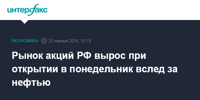 Рынок акций РФ вырос при открытии в понедельник вслед за нефтью