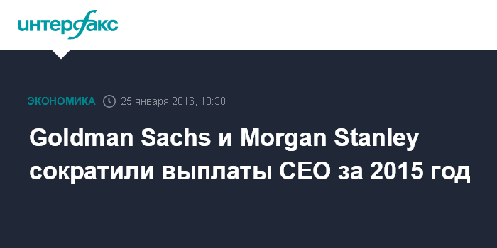 Москва. 25 января. INTERFAX.RU – Goldman Sachs и Morgan Stanley сократили годовые выплаты своим руководителям, поскольку падение рынков оказало негативное влияние на прибыли американских банков в 2015 году, пишет The Wall Street Journal.