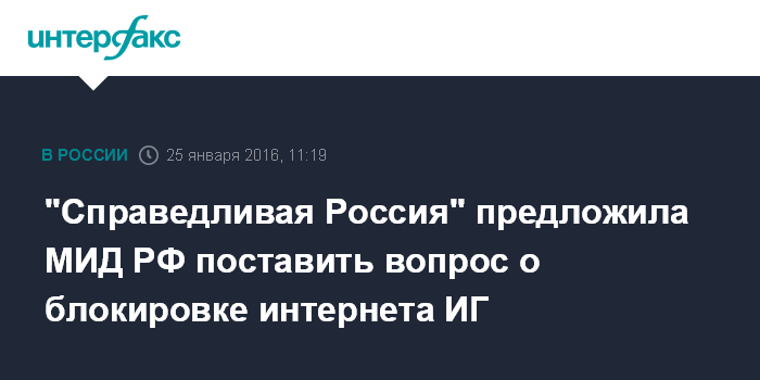 "Справедливая Россия" предложила МИД РФ поставить вопрос о блокировке интернета ИГ