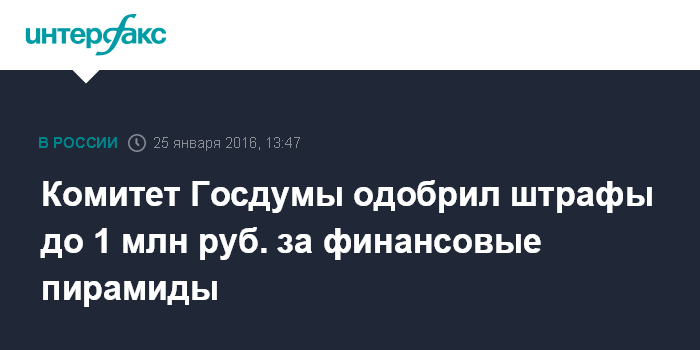 Комитет Госдумы одобрил штрафы до 1 млн руб. за финансовые пирамиды
