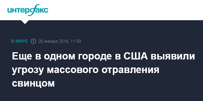 Еще в одном городе в США выявили угрозу массового отравления свинцом