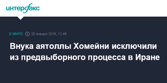 Москва. 26 января. INTERFAX.RU - Внук покойного лидера исламской революции в Иране аятоллы Сейида Рухоллы Мусави Хомейни не сможет участвовать в выборах в Совет экспертов, сообщают во вторник западные СМИ.