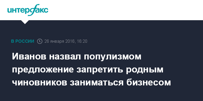 Иванов назвал популизмом предложение запретить родным чиновников заниматься бизнесом