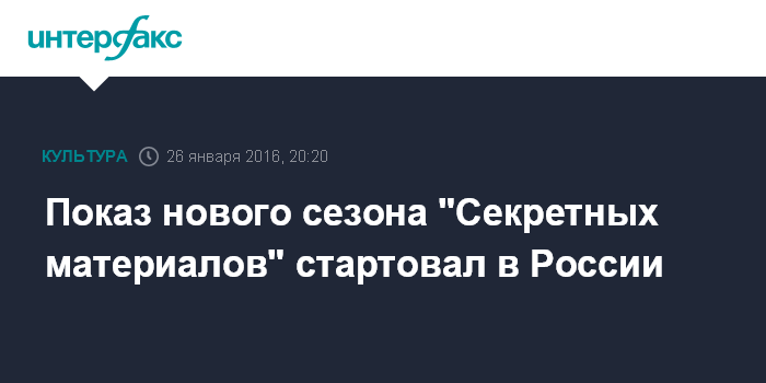 Москва. 26 января. INTERFAX.RU - Первый эпизод нового сезона сериала "Секретные материалы" после 14-летнего перерыва вышел на экраны - в России его показали во вторник вечером на телеканале ТВ-3.