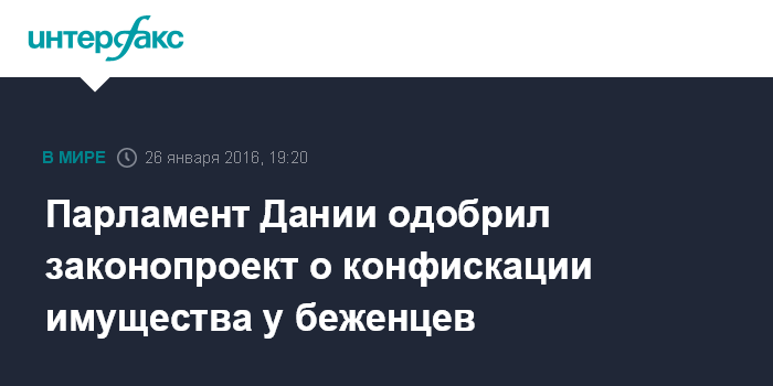 Москва. 26 января. INTERFAX.RU - Датский парламент поддержал реализацию плана по конфискации ценностей у иммигрантов, сообщает "Би-би-си".