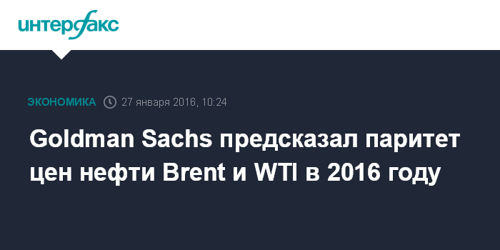 Москва. 27 января. INTERFAX.RU – Аналитики Goldman Sachs ожидают примерно одинаковых цен на нефть марок Brent и WTI на протяжении 2016 года.