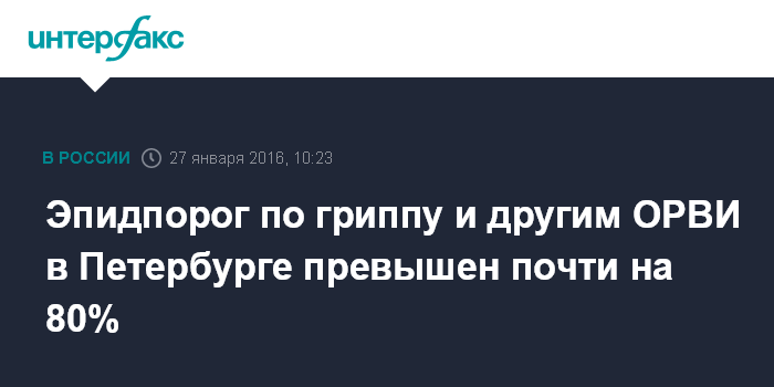 Москва. 27 января. INTERFAX.RU - Эпидемический подъем заболеваемости гриппом и другими ОРВИ в Петербурге продолжается, сообщила в среду пресс-служба управления Роспотребнадзора по городу.