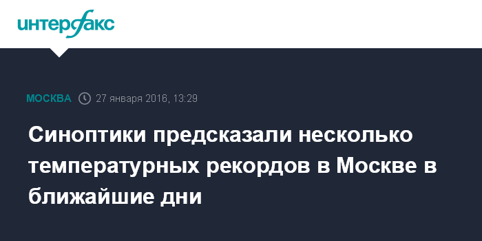 В пятницу воздух прогреется до плюс 1-2 градусов (прежний рекорд дня установлен в 2001 году - плюс 2,9), в субботу - до 2-3 градусов тепла (прежний максимум 1989 года - плюс 2,5), в воскресенье - около 2 градусов тепла (максимум 31 января зафиксирован в 1961 году - 2,7 градусов тепла).