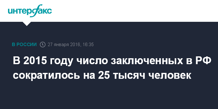 Москва. 27 января. INTERFAX.RU - Количество заключенных в тюрьмах и колониях России сократилось в прошлом году более чем на 25 тысяч человек, в то же время незначительно увеличилось число заключенных в СИЗО, сообщили в Федеральной службе исполнения наказаний (ФСИН).