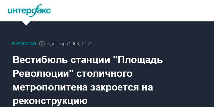 Москва. 3 декабря. INTERFAX.RU - Восточный вестибюль станции "Площадь Революции" Арбатско-Покровской линии столичного метро, имеющий выход на Никольскую улицу и Богоявленский переулок, с 8 декабря закрывается на реконструкцию и замену эскалаторов, сообщили "Интерфаксу" в пресс-службе метрополитена в среду.