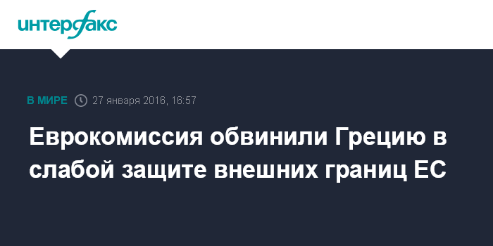 Москва. 27 января. INTERFAX.RU - Греция серьезно нарушила свои обязательства по защите внешних границ Шенгенской зоны, заявили в Еврокомиссии. Об этом сообщает "Би-би-си".
