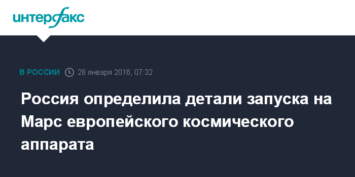 Проект "ЭкзоМарс" - совместный российско-европейский проект по исследованию Марса, который предусматривает реализацию миссий 2016 и 2018 годов. Миссия "ЭкзоМарс-2016" предусматривает использование орбитального модуля и демонстрационного десантного модуля, создаваемых ЕКА.