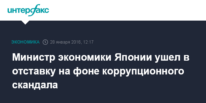 Москва. 28 января. INTERFAX.RU – Министр экономики Японии Акира Амари в четверг объявил о своей отставке в связи с коррупционным скандалом, сообщает агентство Bloomberg.