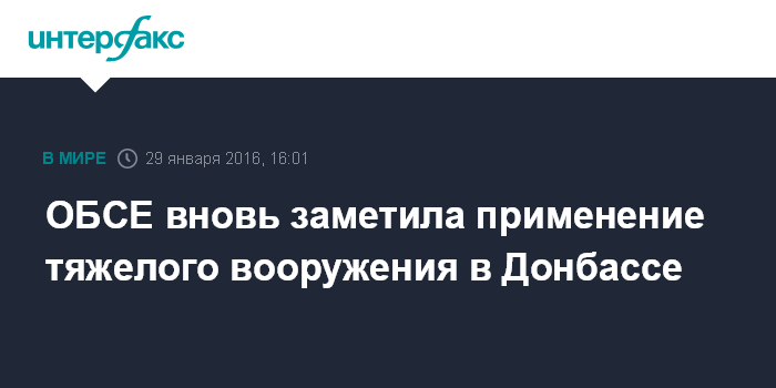 Москва. 29 января. INTERFAX.RU - Специальная мониторинговая миссия ОБСЕ подтверждает, что в Донбассе вновь используется тяжелое вооружение.