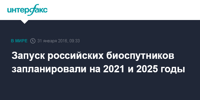 Запуск российских биоспутников запланировали на 2021 и 2025 годы