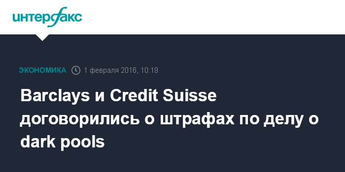 Москва. 1 февраля. INTERFAX.RU – Банки Barclays и Credit Suisse договорились с регуляторами США по делу о частных торговых площадках, так называемых dark pools.