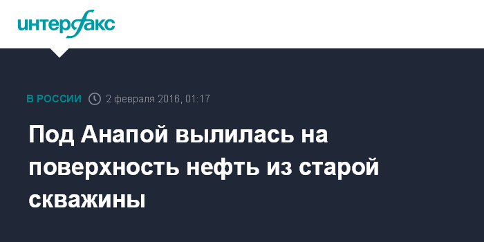 Москва. 2 февраля. INTERFAX.RU - В окрестностях Анапы обнаружили нефтяное пятно, которое появилось после разлива из закрытой скважины, сообщило ГУ МЧС РФ по Краснодарскому краю.