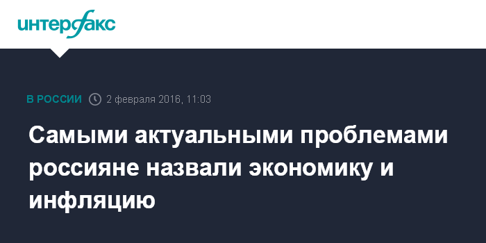 Москва. 2 февраля. INTERFAX.RU - Россияне в последние месяцы включают в тройку наиболее значимых проблем страны экономику, инфляцию и низкий уровень жизни, сообщает ВЦИОМ.