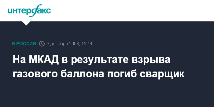 Москва. 3 декабря. INTERFAX.RU - В Москве в среду днем в результате взрыва сварочного баллона погиб человек, сообщил "Интерфаксу" источник в правоохранительных органах.