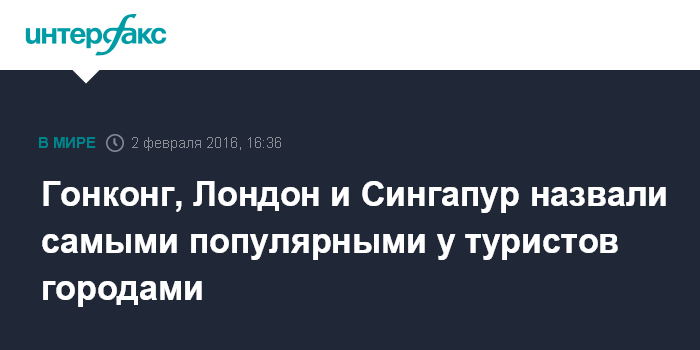 Москва. 2 февраля. INTERFAX.RU - Гонконг, Лондон и Сингапур возглавили топ-100 городских туристических направлений по версии исследовательской компании Euromonitor.
