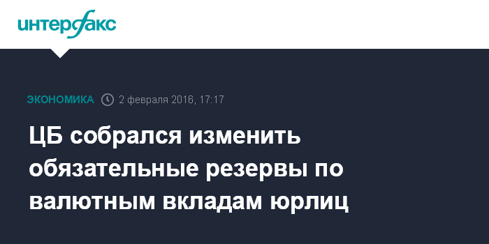 Москва. 2 февраля. INTERFAX.RU – ЦБ РФ изучает вопрос изменения обязательных резервов по валютным вкладам юридических лиц, сообщил журналистам первый зампред Банка России Алексей Симановский.