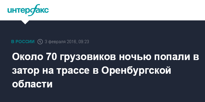 Около 70 грузовиков ночью попали в затор на трассе в Оренбургской области