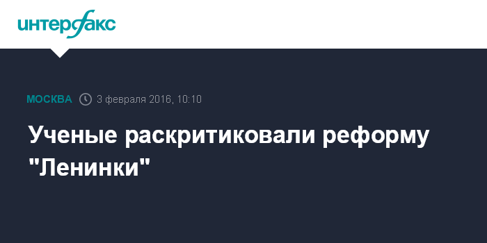 Москва. 3 февраля. INTERFAX.RU - 450 ученых обратились к руководству Российской государственной библиотеки (РГБ) и советнику президента по культуре Владимиру Толстому с письмом, в котором выразили обеспокоенность ходом проведения библиотечной реформы в РГБ (Ленинке), пишут "Известия".