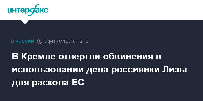 Москва. 3 февраля. INTERFAX.RU - Пресс-секретарь президента РФ Дмитрий Песков категорически отверг утверждения о том, что Москва пытается использовать ситуацию с несовершеннолетней россиянкой в Германии для раскола Евросоюза в условиях миграционного кризиса.
