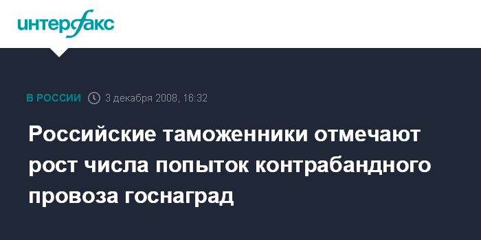 Москва. 3 декабря. INTERFAX.RU - Российские таможенники последнее время все чаще сталкиваются с попытками контрабандного провоза через границу государственных наград, отмечают в Федеральной таможенной службе РФ (ФТС).