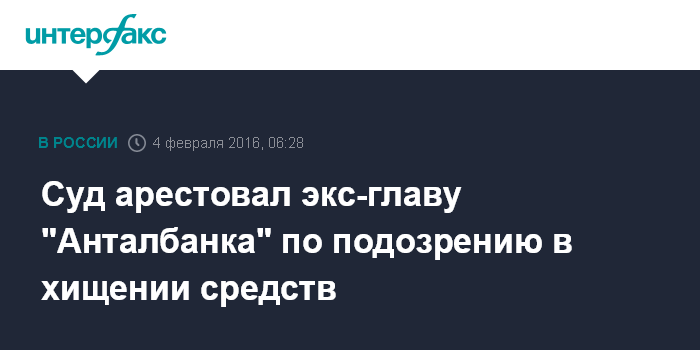 Суд арестовал экс-главу "Анталбанка" по подозрению в хищении средств