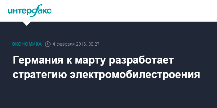 Москва. 4 февраля. INTERFAX.RU – Правительство Германии и лидеры автопрома планируют к марту разработать стратегию электромобилестроения в стране, поскольку ФРГ намерена стать ведущим рынком в этой сфере, сообщает Deutsche Welle.