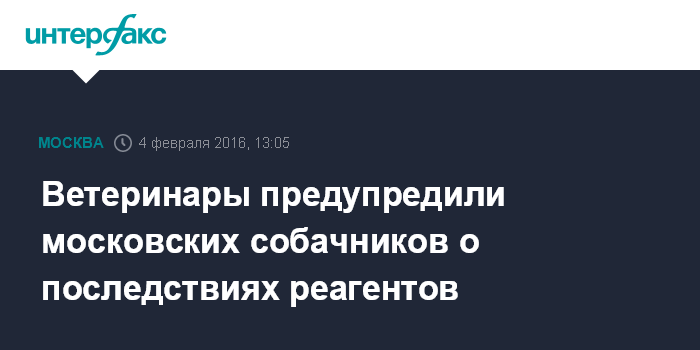 Москва. 4 февраля. INTERFAX.RU - В зимний период, когда для очистки дорог используются реагенты, необходимо соблюдение ряда правил выгула собак, заявил глава комитета ветеринарии столицы Александр Туник.