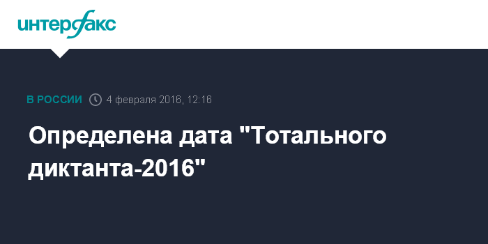 Москва. 4 февраля. INTERFAX.RU - Международная акция по проверке грамотности "Тотальный диктант-2016" состоится 16 апреля, сообщают организаторы со ссылкой на руководителя проекта Ольгу Ребковец.