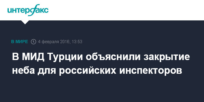 "Маршрут наблюдательного полета российской стороны, который они требовали провести 2-5 февраля 2016 года, не был согласован между сторонами в рамках Договора, и по этой причине этот полет не был реализован" - отметил представитель МИД Турции.