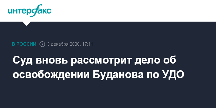 "Таким образом, дело Буданова снова направлено в Димитровградский суд. Дата его рассмотрения еще не определена", - сообщил агентству "Интерфакс" старший помощник прокурора Ульяновской области Василий Зима.