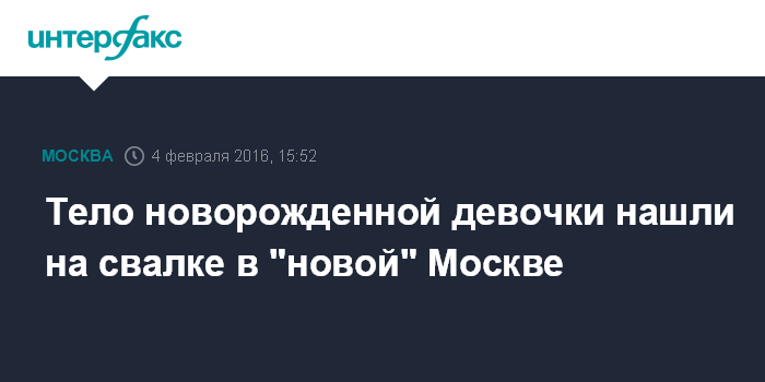 "Днем 4 февраля возле мусорных контейнеров, расположенных вблизи жилых домов по улице Красная Пахра на территории "новой" Москвы, местные жители обнаружили тело новорожденной девочки. В ходе осмотра внешних признаков насильственной смерти не обнаружено", - сообщил сотрудник пресс-службы.