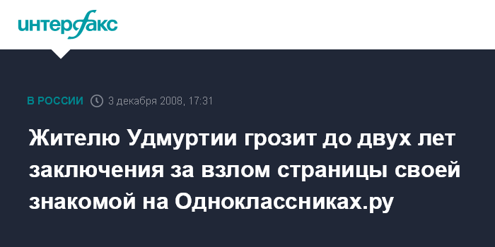 Жителю Удмуртии грозит до двух лет заключения за взлом страницы своей знакомой на Одноклассниках.ру