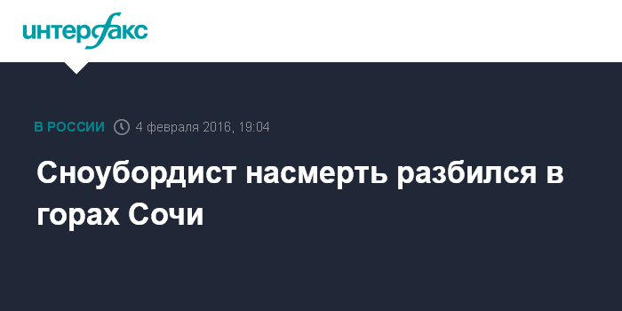 Москва. 4 февраля. INTERFAX.RU - На курорте "Роза Хутор" в Сочи во время катания на сноуборде погиб турист, сообщили в четверг "Интерфаксe" в экстренных службах региона.