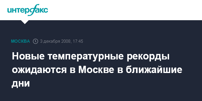 Москва. 3 декабря. INTERFAX.RU - В четверг и пятницу в столице возможно будут установлены новые рекорды тепла для 4 и 5 декабря, сообщили "Интерфаксу" в Гидрометеобюро Москвы и Московской области в среду.