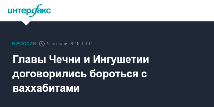 Москва. 5 февраля. INTERFAX.RU - Глава Чеченской Республики Рамзан Кадыров заявил, что Чечня и Ингушетия будут вместе бороться с проявлениями ваххабизма.