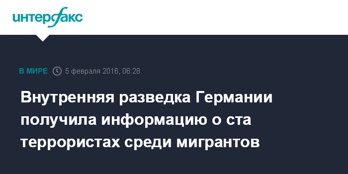 Внутренняя разведка Германии получила информацию о ста террористах среди мигрантов