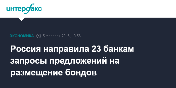 Россия направила 23 банкам запросы предложений на размещение бондов