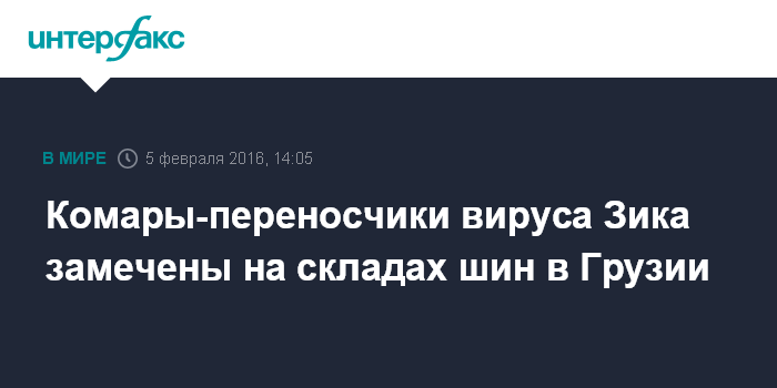 Москва. 5 февраля. INTERFAX.RU - В Грузии не видят угрозы распространения вируса лихорадки Зика, однако комаров рода Aedes, которые являются переносчиками этого заболевания, специалисты фиксировали в стране уже два раза.