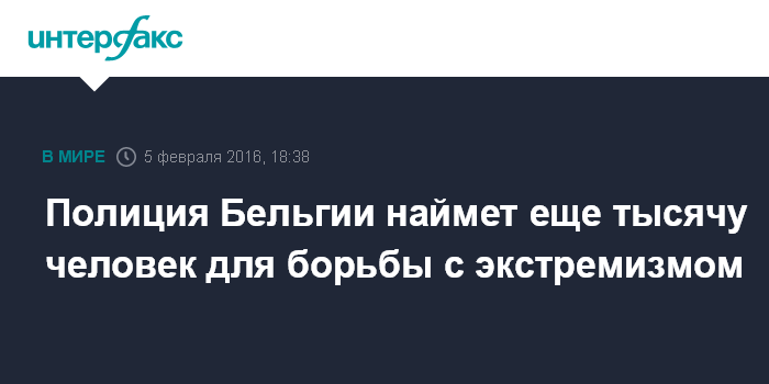 Москва. 5 февраля. INTERFAX.RU - Власти Бельгии одобрили план по найму в ближайшие четыре года тысячи новых сотрудников полиции для борьбы с экстремизмом, сообщают в пятницу местные СМИ.