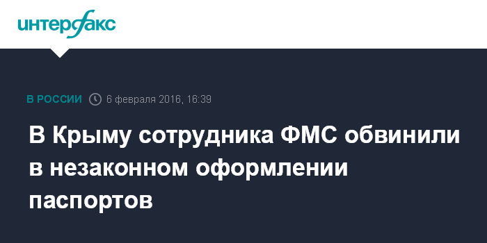 Москва. 6 февраля. INTERFAX.RU - Начальник миграционного пункта УФМС в Крыму обвиняется в незаконной выдаче 94 паспортов, сообщается в субботу на сайте СК по республике Крым.