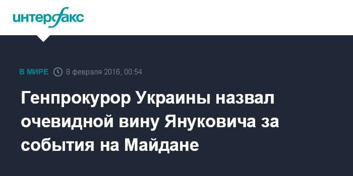 Генпрокурор Украины назвал очевидной вину Януковича за события на Майдане