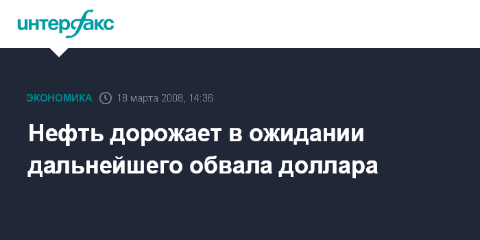 Лондон. 18 марта. INTERFAX.RU - Цены на нефть растут в ожидании дальнейшего падения доллара США в связи с возможным снижением базовой ставки Федеральной резервной системой (ФРС), сообщает агентство Bloomberg.